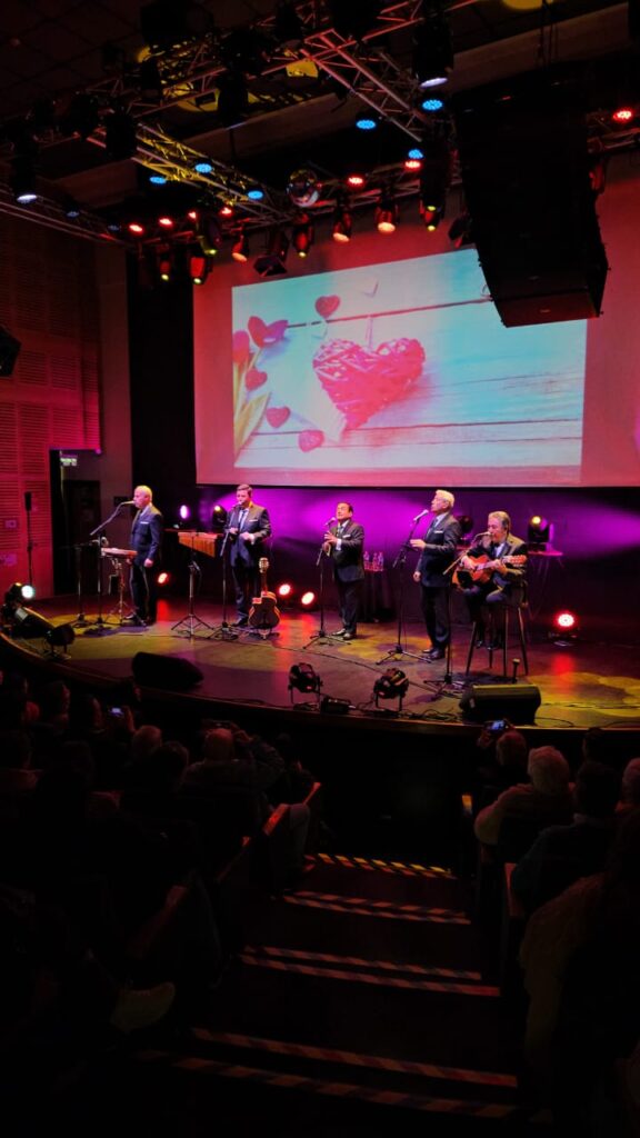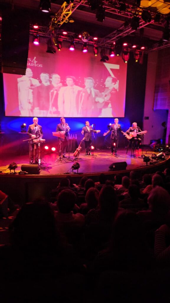 El pasado miércoles 10 de diciembre, el Teatro de Carabineros de Chile, ubicado en Vasconia 1605, Providencia, fue escenario de una noche inolvidable. La agrupación vocal Los Cuatro Cuartos presentó su espectáculo “63 años fabulosos por siempre”, en el marco de una actividad organizada en conjunto con el Museo Histórico y Centro Cultural, la Dirección de Bienestar de Carabineros de Chile y la Caja de Compensación Los Andes.